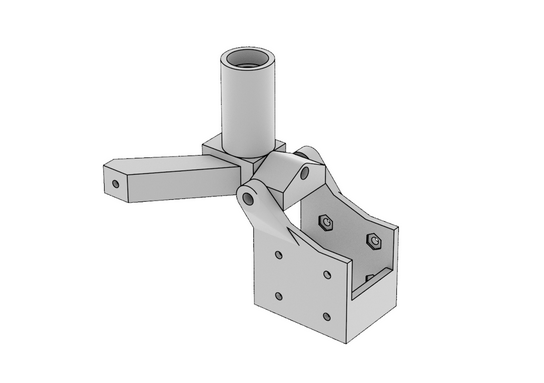 인쇄된 로터 헤드는 세 부분으로 구성됩니다. 바닥 부분은 M2.5 나사를 사용하여 원래 합판 철탑에 나사로 고정됩니다. 첫 번째 부품과 두 번째 부품 사이에있는 M3x35 나사는 피치 축 자유도를 제공하고, 두 번째 부품과 세 번째 부품 사이의 연결은 롤 축 자유도를 제공합니다. 후자의 축은 나사식 자동 잠금 너트가있는 M3x30 나사로 만들어집니다. 로터 쪽에서 스크류 헤드에는 면적이 넓은 와셔가 있습니다.