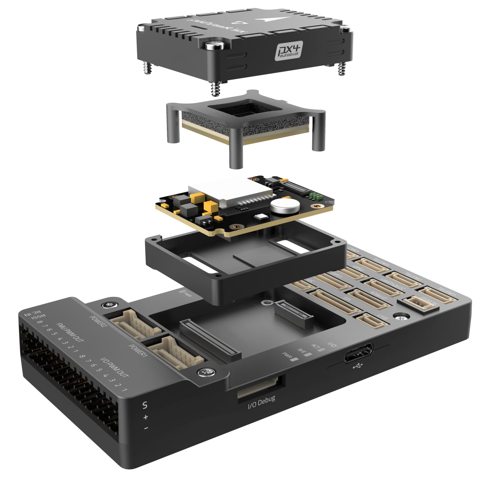 - separated IMU, FMU, and Base system connected by a 100-pin & a 50-pin Pixhawk® Autopilot Bus connector, designed for flexible and customizable systems
